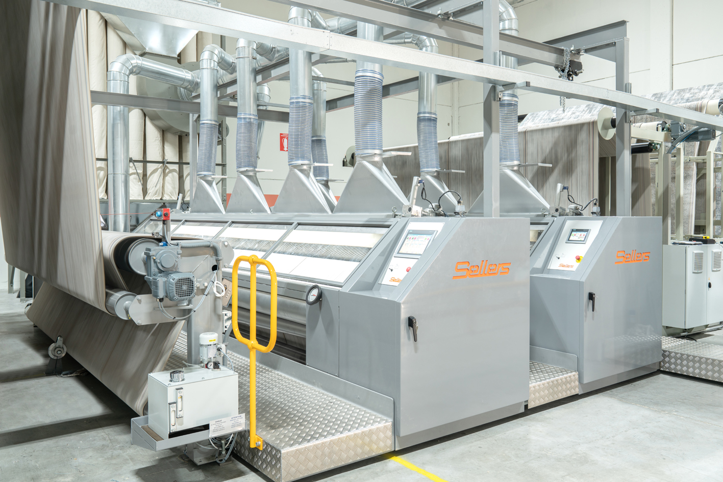 Sellers remains committed to providing complete finishing solutions for all carpet, tile and artificial grass products. Its range includes machines for tufted secondary backing, both conventional, powder and extrusion lamination, Wilton and Axminster products, artificial grass and foam lines, coating lines for bitumen, PVC, PU and other polymers, as well as shearing for all carpet products.