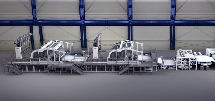 The other line is a high-speed spunlace line for processing viscose and polyester fibres. It will have two Andritz TT cards for web forming and a Jetlace Essentiel unit for hydroentanglement. The TT card technology is designed to enable drylaid web forming at very high speed.