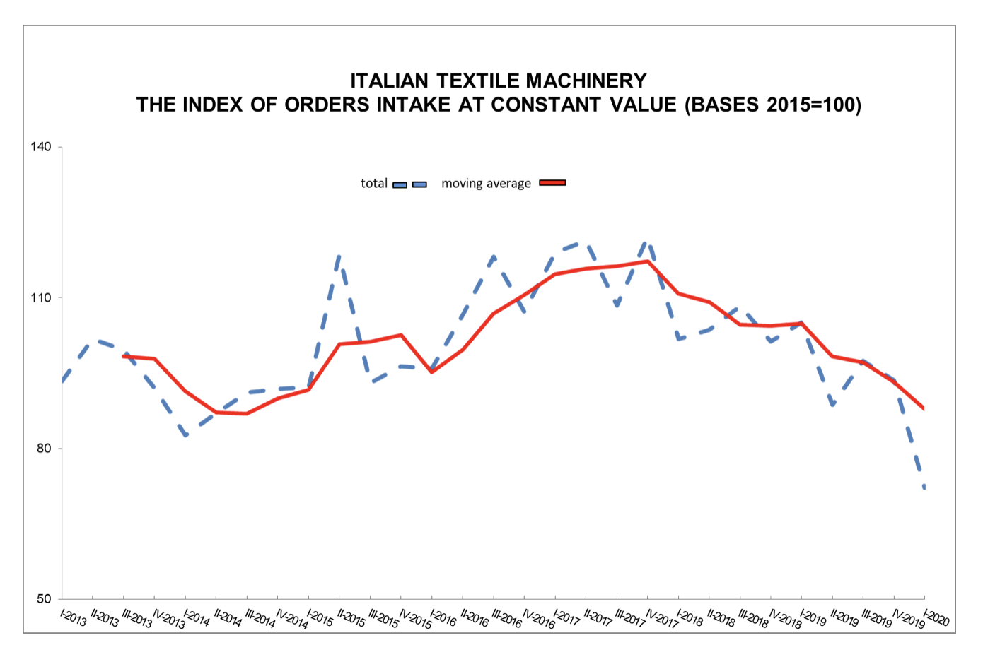 “In the first quarter of 2020, the orders intake of Italian textile machinery registered a sharp drop. The Covid-19 pandemic impacts heavily on the sector. The consequences on the orders will be more negative in the second quarter.”