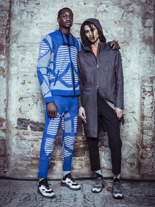The collection, crafted from Merino wool ranging between 17 and 19.5 microns, includes zip-up hoodies, track pants, trench coats and pullovers, and has been treated so as to be water-repellent, and includes reflective overlays and inserts, functional pocket zips, laser-cut details and, in certain instances, two-way stretch.