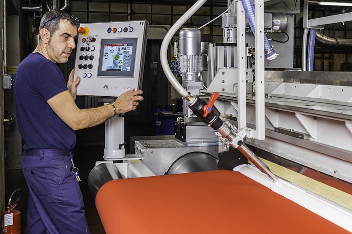 The extremely flexible texCoat unit at Mariani in Italy is allowing the company to carry out both knife over air and knife over roller coating based on simple and user-friendly PLC techniques. © Monforts