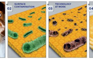 AEGIS Vesta is directly applied as a durable finish on the textile during the manufacturing process. When bacteria come into contact with the treated surface, it is punctured, preventing bacteria from growing and reproducing. As a quat saline based technology, BPB testing can confirm the presence of AEGIS Vesta on treated fabric in minutes, whether at a manufacturing site or a laboratory testing facility, Microban says.