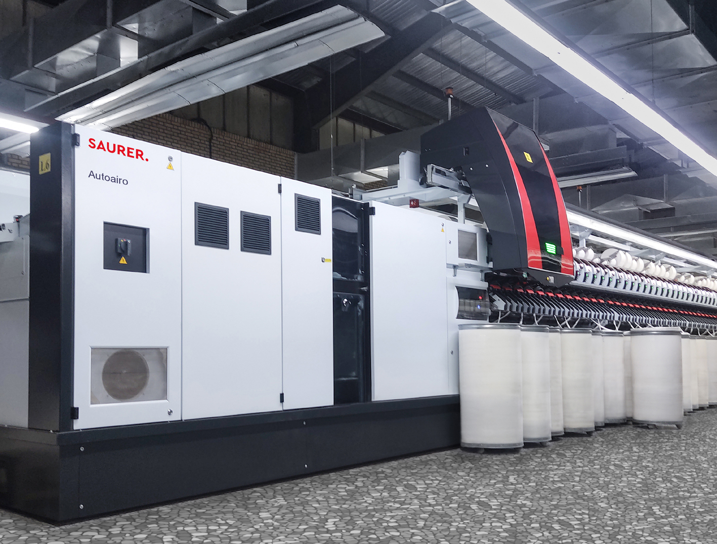 The Autoairo sets new benchmarks for producing high-quality air spun yarns branded Belairo. These yarns have a high pilling resistance and are very durable. Compared to combed ring spun yarn, the production of Belairo yarns uses less energy and production space, which means less building and air conditioning costs. Saurer has combined this resource-saving spinning technology with the most advanced automation solutions. Thanks to digital control of the autonomous spinning positions and new smart features, yarn quality is guaranteed and not dependent on staff availability. Saurer’s Autoairo air-spinning machine offers flexibility in processing different fibres – cotton, polyester and viscose, as well as the new chemically regenerated fibres.