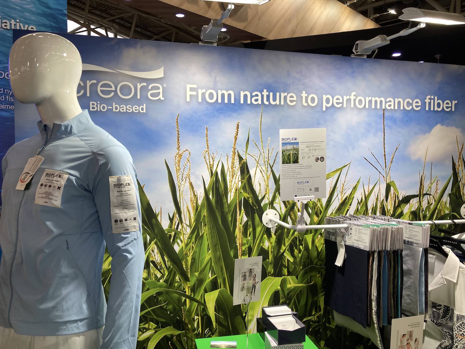 As the first company to commercialise bio-based elastane, Hyosung presented a range of textiles and garments made with creora bio-based elastane, which replaces 30 percent of petroleum-based resources with bio-based materials derived from industrial field corn. Hyosung are planning to introduce a 70 percent bio-derived version next year, aiming for a full 100 percent, without stretch or recovery loss, in the future.